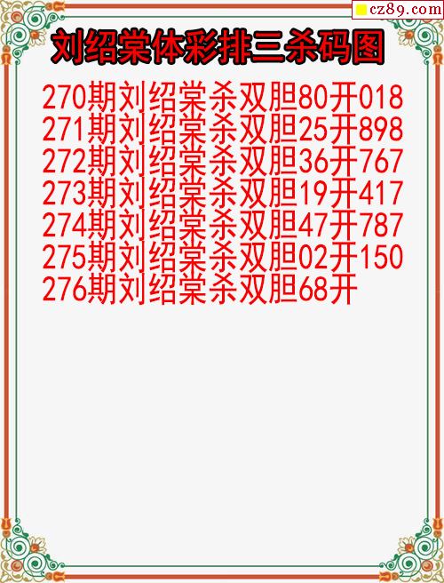 > 25年276期刘绍棠体彩排三杀码图
