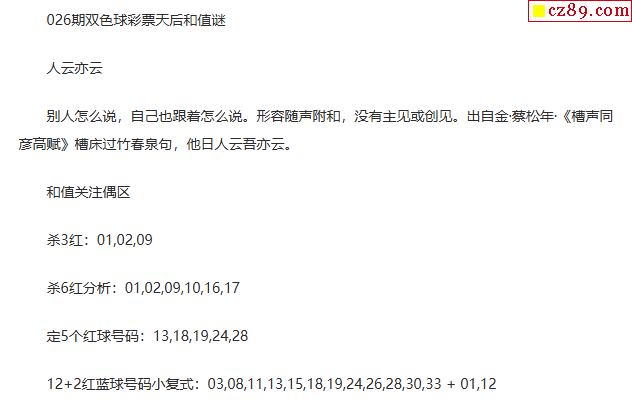 双色球字谜26年026期老夫子选号经文 6红+1蓝
