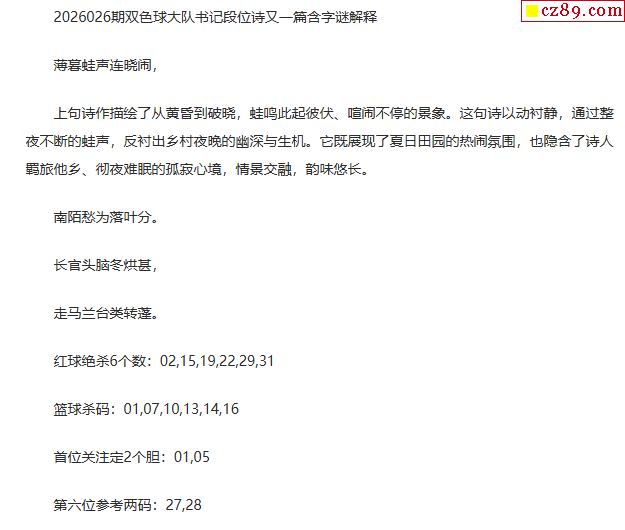 > 26年福彩双色球026期 大队书记段位诗另一篇
