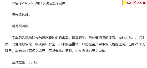 26年福彩双色球026期 白玫瑰定蓝球字谜