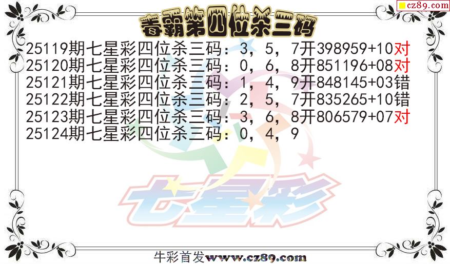 > 七星彩2025124期毒霸第四位杀三码图迷